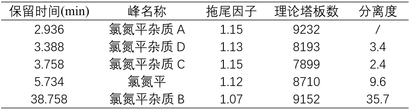 (峰1_氯氮平雜質(zhì)A;峰2_氯氮平雜質(zhì)D;峰3_氯氮平雜質(zhì)C;峰4_氯氮平;峰5_氯氮平雜質(zhì)B;)