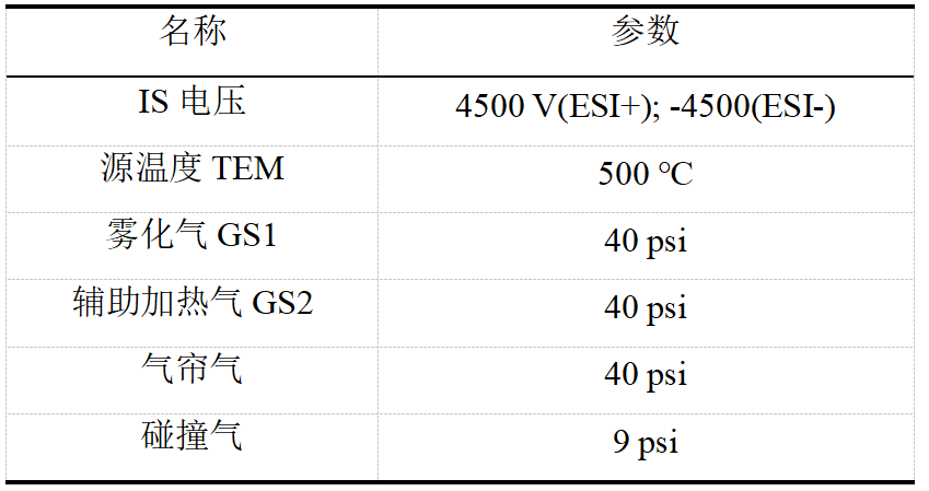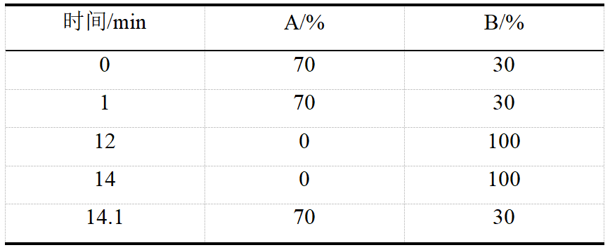 流  動  相A:0.1%甲酸銨溶液(含5 mmol/L甲酸銨)B:甲醇-0.1%甲酸銨溶液(含5 mmol/L甲酸銨)(95:5)