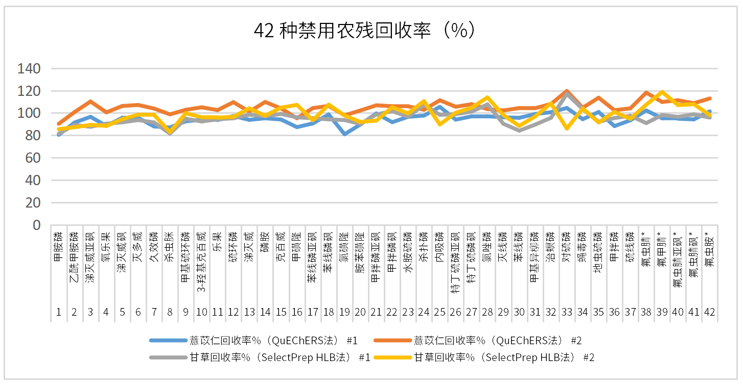 圖2  42種禁用農殘回收率圖